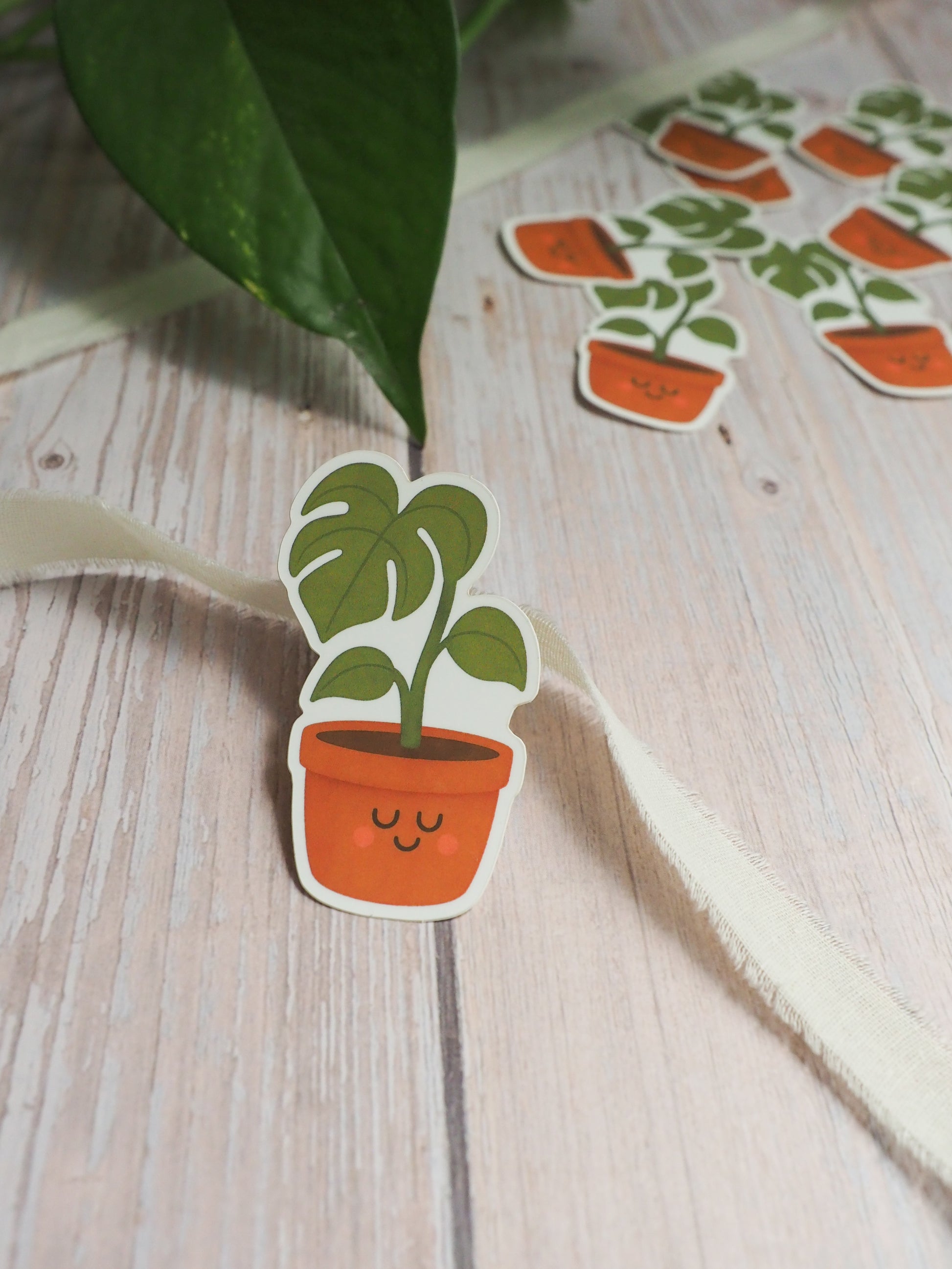 Mit seinem süßen Gesicht und dem feinen Aquarell-Look ist der Monstera-Sticker ein Must-have für alle Pflanzenfans.